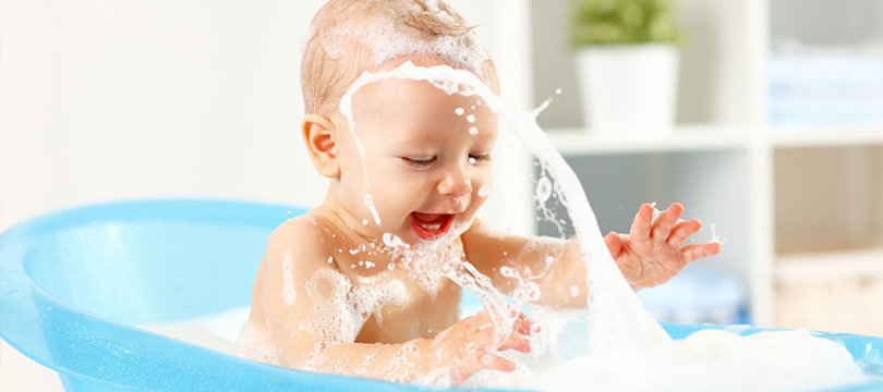 Utilisez à chaque fois une éponge de bain, un savon au pH neutre ou un gel douche et un shampoing spécial bébé, sans en mettre en trop grande quantité. Il est fortement conseillé de réserver une serviette de toilette uniquement pour bébé, à laver une fois par semaine et à placer dans un lieu bien aéré.